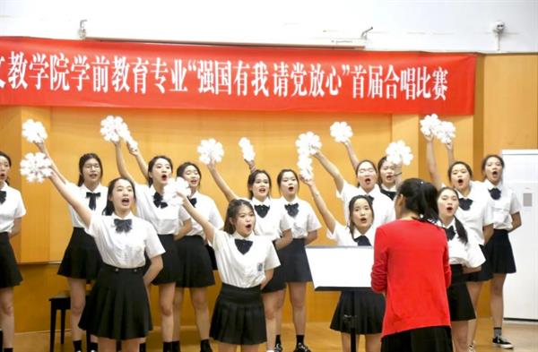 为培养专业能力强、综合素质高的学前教育专业人才,奏响“喜迎二十大 奋进新征程”乐章,文教学院举办首届“强国有我 请党放心”红歌合唱比赛。本次比赛分6组演唱,每组两曲,同学们用饱满的精神面貌,积极的演唱状态呈现出一场精彩的演出。