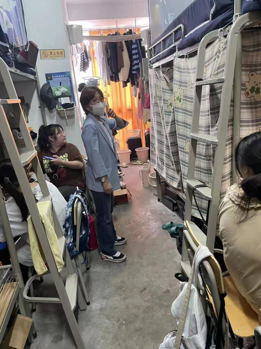 5月25日中午,老师们在走访寝室的过程中耐心解答同学们学习和生活上的各种问题,听取同学们反馈的意见和建议,协助他们解决实际困难,给学生带来“全方位的关爱”。
