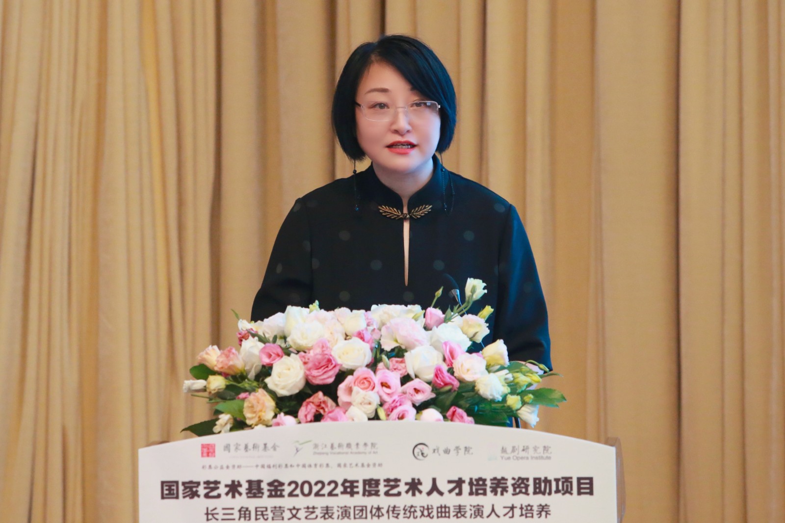 薛亮宣布“长三角民营文艺表演团体传统戏曲表演人才培养项目”正式开班。薛亮、陈吉芬为国家艺术基金艺术人才培养资助项目任课教师代表杨小青、胡志毅颁发聘书。