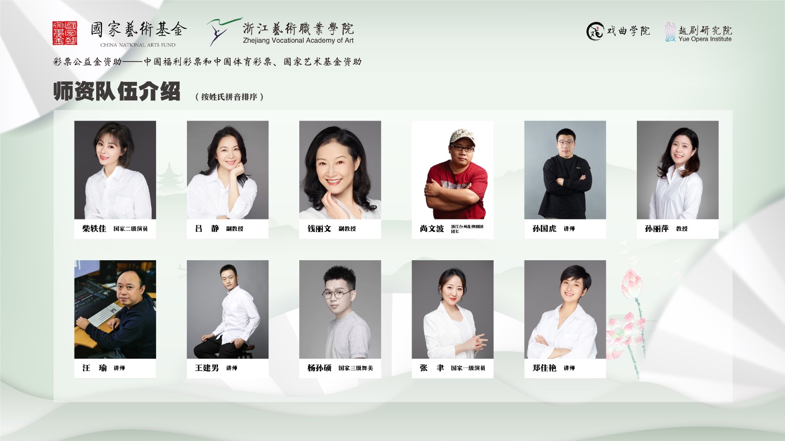 “这是国家艺术基金第一次资助戏曲类民营文艺表演团体人才培养,体现了国家对戏曲类民营文艺表演团体的关注和重视。”支涛在会上介绍了国家艺术基金艺术人才培养资助项目的基本情况,本次培训主面向在浙江、上海、江苏、安徽及福建民营戏曲表演团体招生,共有100多人参加报名,最终挑选出30名学员参加学习,年龄在45周岁以下,从事戏曲表演10年以上,有获得过省级以上奖项,也有在观众中有着较好市场号召力。