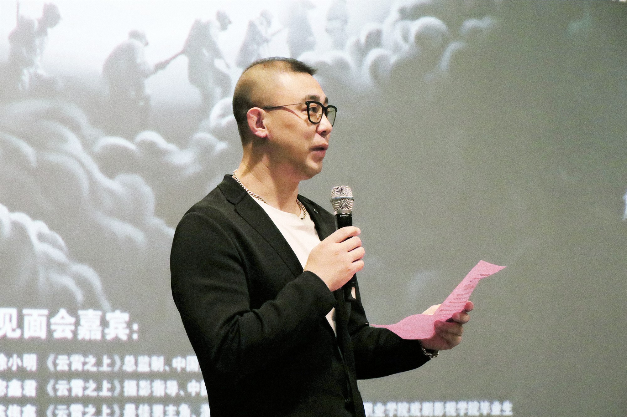 水墨质感、黑白片、长镜头、幻境、20多种方言……这些元素共同成就了《云霄之上》的独特气质。影片放映结束后,现场响起热烈掌声,全体师生以这种方式表达了对影片的喜爱以及革命先烈的敬意。