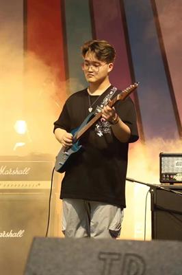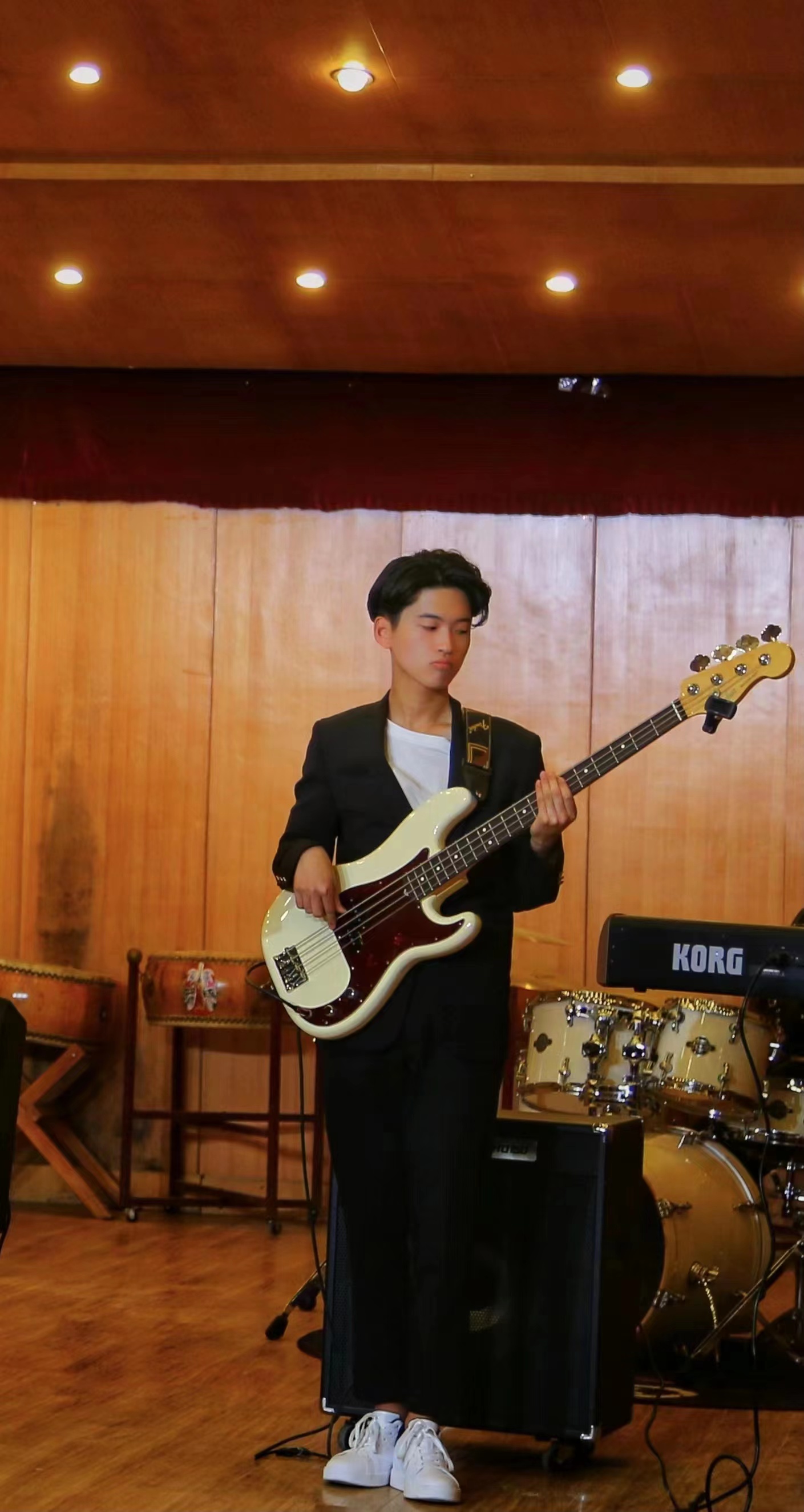 宋呈棚,音乐学院2021级流行班贝斯演奏专业在校生。虽然来到浙艺学习才只有短短一年时间,但宋呈棚俨然已是音乐学院同学们熟悉的老演员之一,每逢演出活动,总能看见他的身影。他说:“虽然以前在学校时排练过很多杨丞琳的歌,但这次是第一次见到她本人,首次参与综艺节目录制难免会有些紧张。今后我会更加努力学习,争取在更大的舞台上展现自我。”