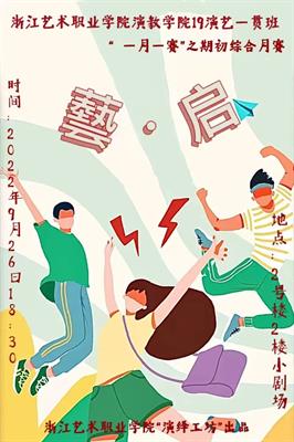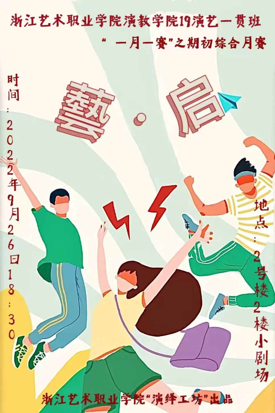 9月26日晚,演教学院表演艺术专业2019(五年一贯制)班期初综合月赛——《藝•启》在二号楼小剧场举行。表演艺术专业“月赛制”教学实践是浙艺首届文化品牌之一和教育厅教学改革项目,经过师生15年的不断探索与实践,已经成为学生展示自我的舞台。这次月赛,向观众及观看线上直播的家长们,展示了19演艺一贯班团结友爱、积极向上、一专多能的专业素养。