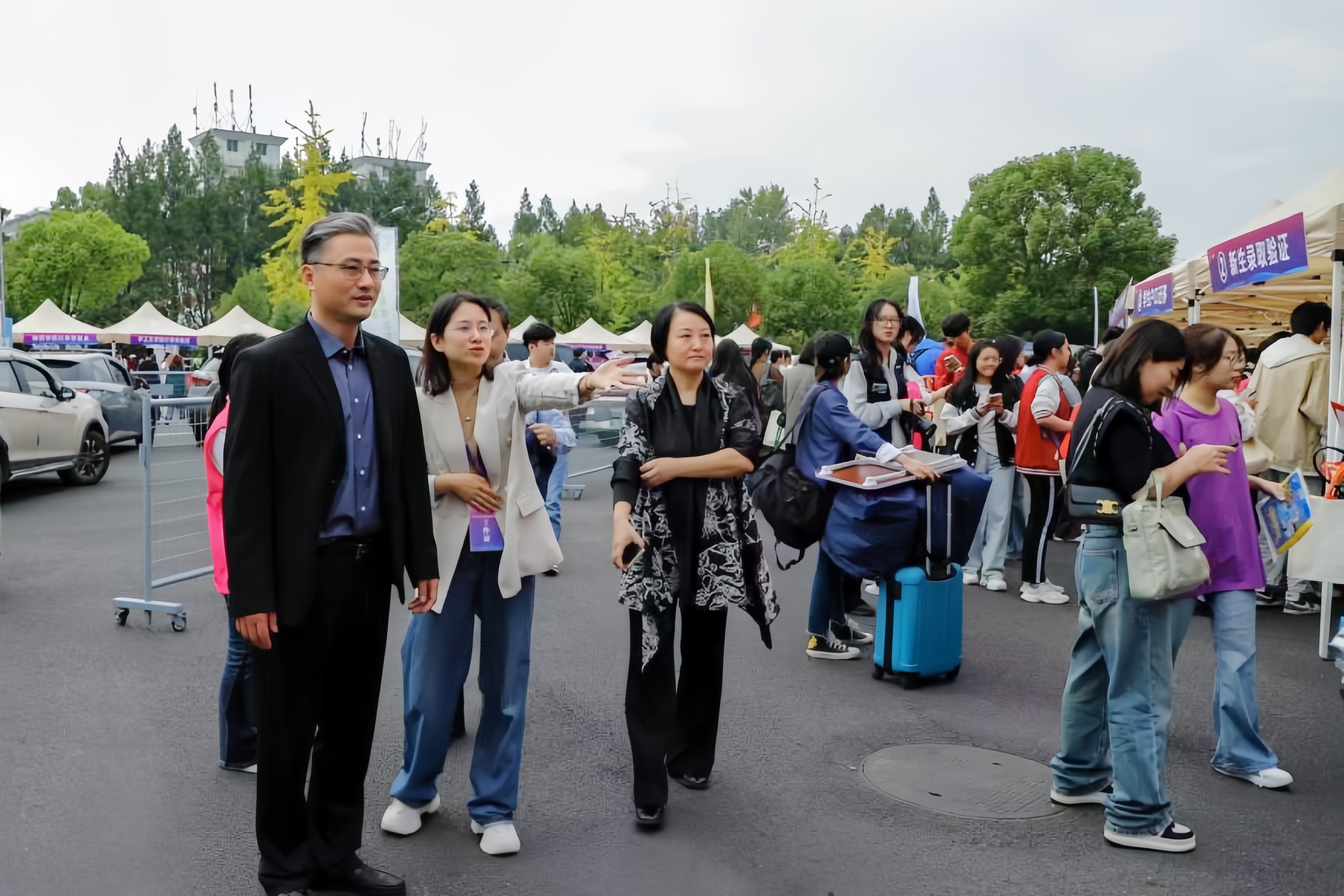 校党委书记薛亮,党委副书记夏开堂,副院长沈军甫、支涛来到报到现场,第一时间看望新生,了解新生报到情况,慰问现场工作人员与志愿者。