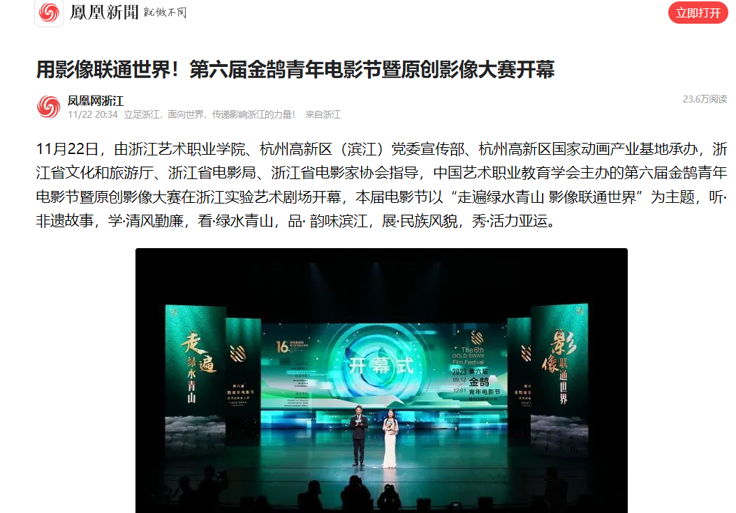 凤凰新闻:用影像联通世界!第六届金鹄青年电影节暨原创影像大赛开幕
