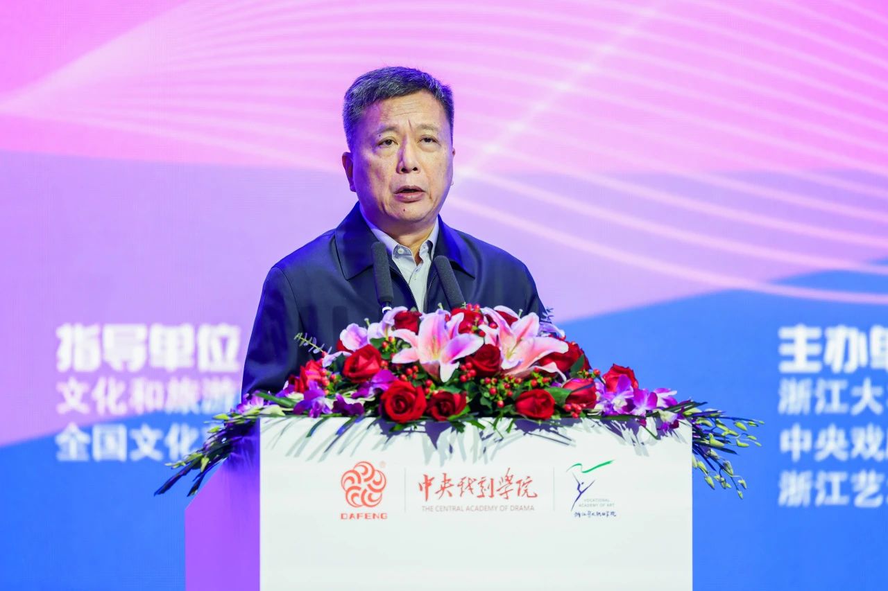 文化和旅游部科技教育司司长陶诚在大会上致辞,他指出,行业产教融合共同体是新时代我国职业教育体系改革的重要载体之一,在深化职业教育改革中发挥着重要作用。舞美行业产教融合共同体今后要聚焦三个方面:统一目标,打造“主体融合、要素聚集、资源共享、持久发展”舞美行业产业生态圈;加强联动,协调好科研院所、普通高校和职业学校开展人才培养、科学研究和社会服务;开放创新,强化集体协作和联合攻关,不断推进舞美领域科技研发、技术创新和产业转化。