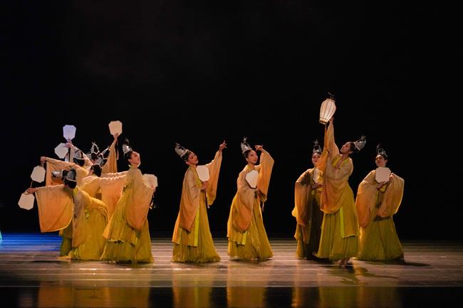 《众里寻他》描绘了金蛾扑冠的少女们,穿过执扇提灯,在千树花开与星河散落中自怜幽独,灯火阑珊,暮然回首他就在身边,原来“灯”即是我们千里追寻的“他”的动人场景。该作品曾入选第十三届“桃李杯”全国青少年舞蹈教育教学成果展演。(编导:李毅源 朱婷 周璐 )