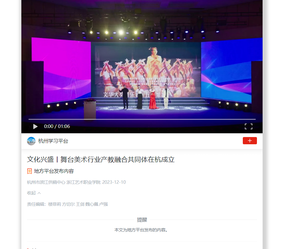 学习强国杭州平台:文化兴盛丨舞台美术行业产教融合共同体在杭成立