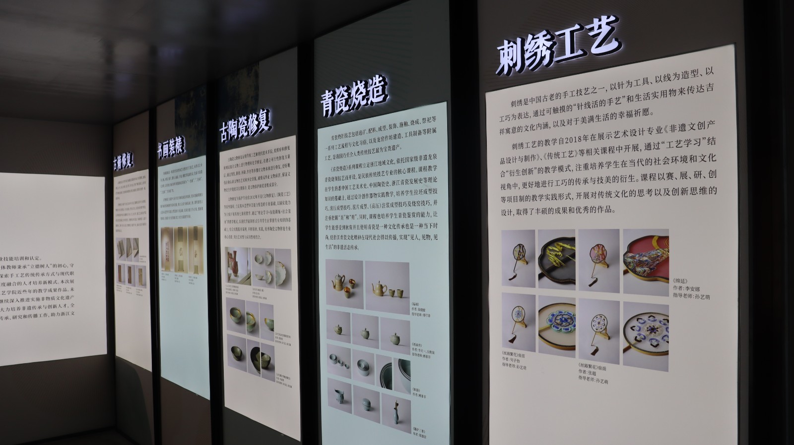 本次展览分为浙艺非遗传习成果展、非遗创意企业邀请展、大学生传统工艺作品展、生活美学浙艺课展、手工艺学院教学成果展五个展区。手工艺学院希望通过展览,在未来非遗传承与保护之路上,进一步深化产教融合,提升专业内涵,构建非遗传承保护、活化创新实践新平台。