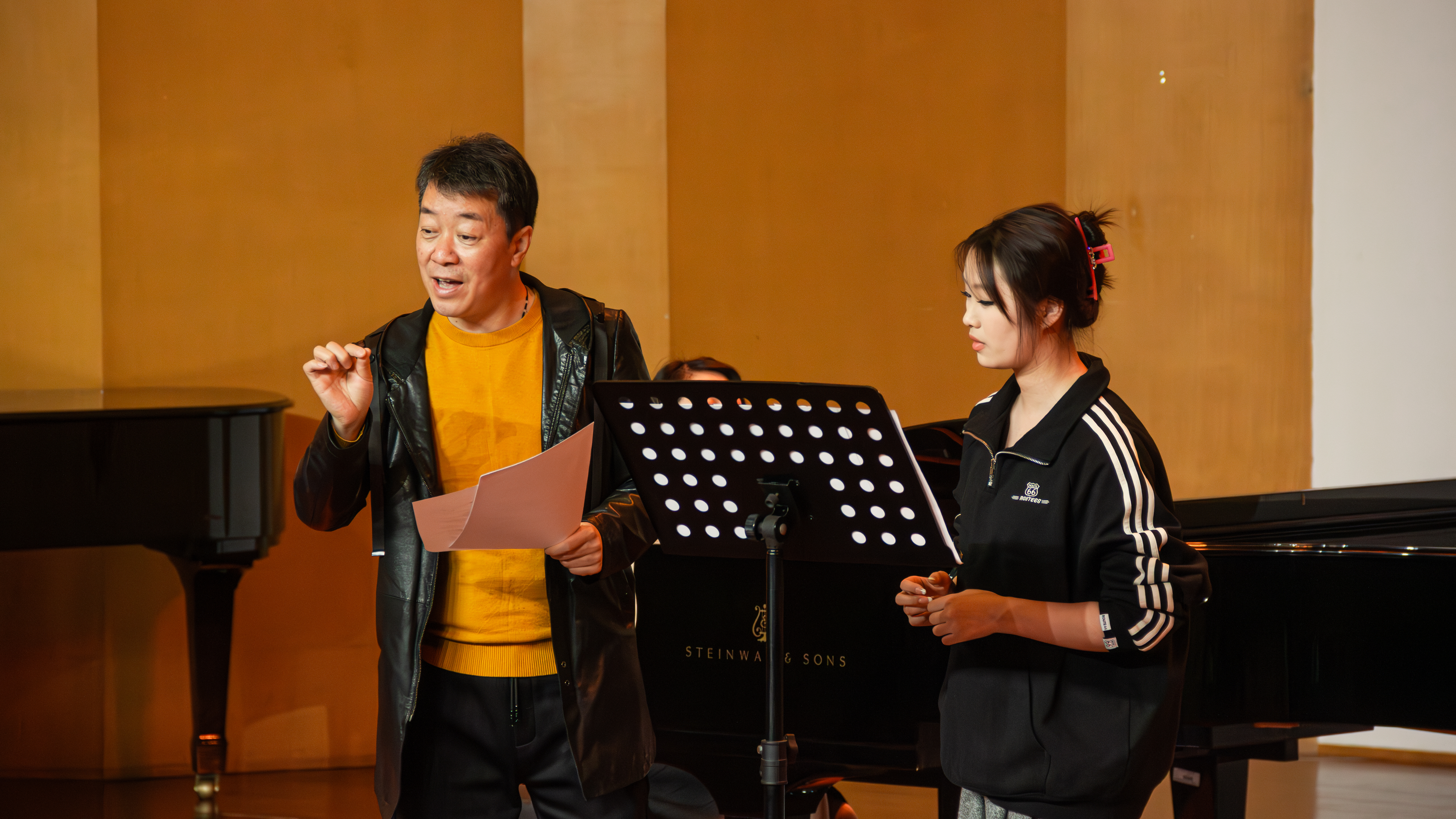 在一对一示范教学环节中,4名音乐学院在校学生分别演唱了《摘菜调》《山寨素描》《等上一辈子》《阿瓦尔古丽》,刘全来分别对情感表达、发音位置、吐字发音等给予具体、有效的指导和纠正。现场不断进行互动交流,既有专业上的指导、更增添了美妙的音乐享受,现场掌声不断。