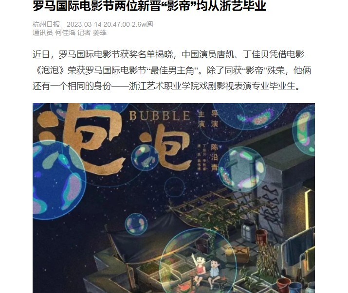 杭州日报:罗马国际电影节两位新晋“影帝”均从浙艺毕业