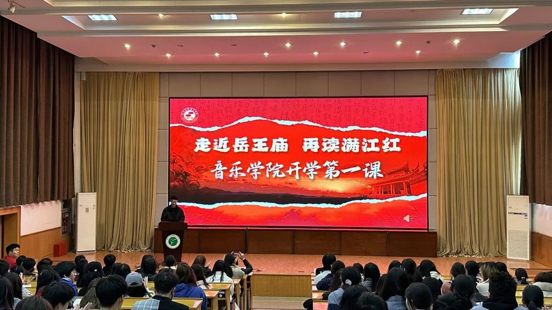 为进一步弘扬中华民族优秀传统文化,引导青年涵养民族精神,厚植爱国情怀,让爱国主义精神扎根于青年心中,3月1日在图信中心报告厅,音乐学院以“走进岳王庙 再读满江红”为主题开展“开学第一课”主题团日活动。本次活动特邀杭州岳庙管理处钱庆老师主讲,全体辅导员和200余名共青团员参加。活动由音乐学院团总支书记陈宏主持。