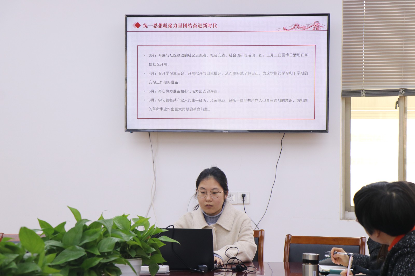 钱杏芬一一点评了各党章学习小组组长的汇报并提出建议,对各小组新学期的学习寄予深切期望,提出要立足身份、结合专业、亮出特色,充分展现新时期青年学生的良好精神风貌。