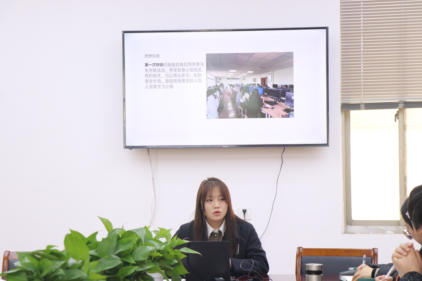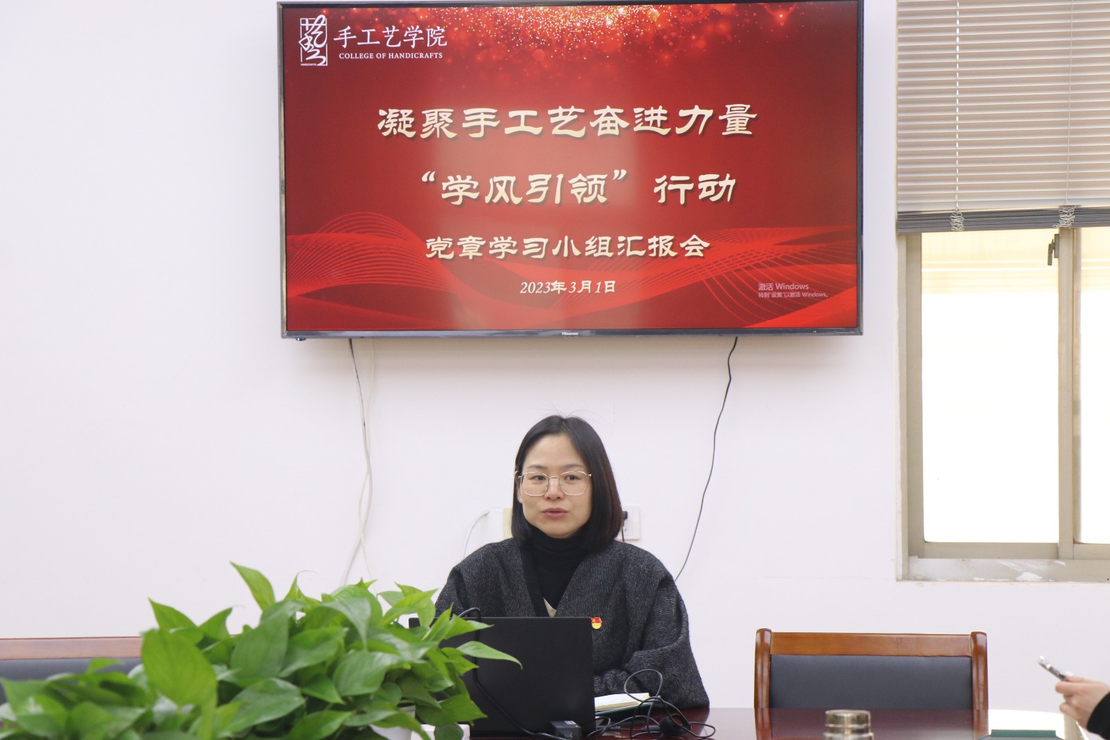 为深入学习宣传贯彻党的二十大精神,3月1日,手工艺学院开展党章学习小组“学”风引领行动汇报会。会议由学生党支部书记胡墨智丽主持,手工艺学院党总支专职副书记王筱芽,组织员钱杏芬,辅导员戚幸怡,各班党章学习小组组长参会。