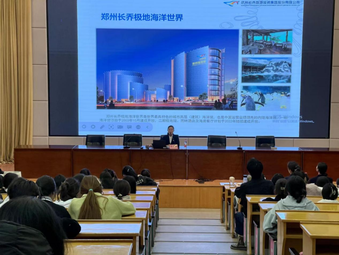 长乔极地海洋公园主持部齐翠翠对旗下的长乔极地海洋公园的背景、发展历程、就业前景等方面情况进行了详细介绍,作为我院党建联盟合作单位,长乔极地海洋公园此次为我院学子提供了专业匹配度较高的就业岗位和志愿服务、实习岗位。