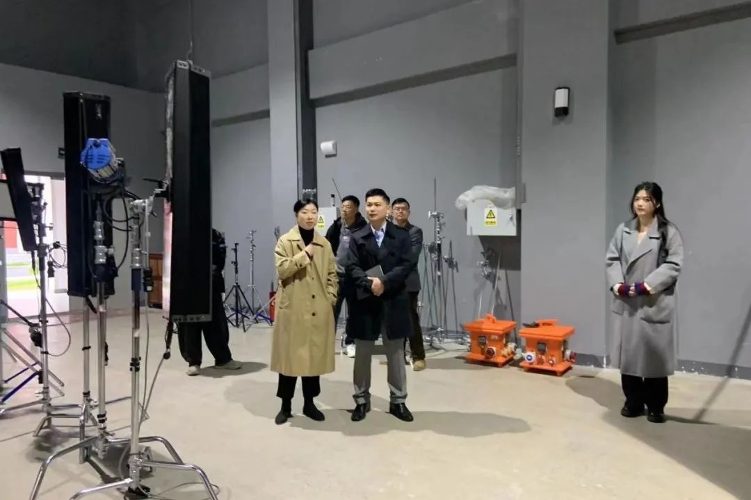 在象山影视学院副院长傅晓颖、影视制作系教师王淞的陪同下,徐旭恒一行参观了实验剧场、综合演播室、未来虚拟影像实验室、电视节目和广播节目制作实验室、标准放映厅、录音棚、摄影棚等场地,双方围绕实训室等场地的建设进行交流讨论。
