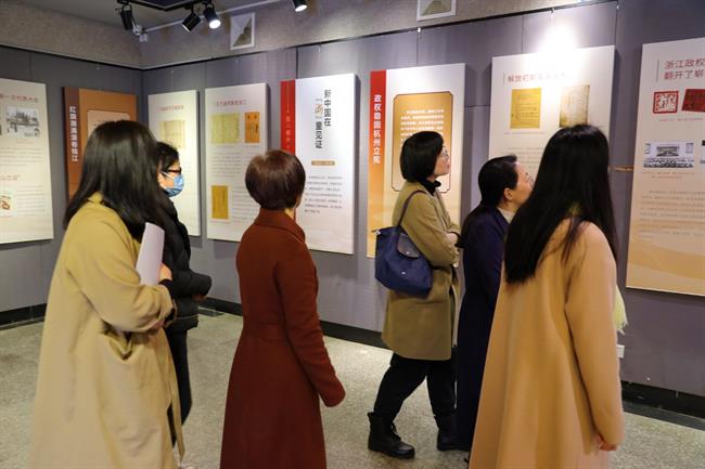 展览分为四个部分:革命火种在“浙”里燃起(1921—1949)、新中国在“浙”里见证(1949—1978)、改革开放“浙”里先行(1978—2002)、新征程“浙”里谱写新篇章(2002至今)。展览以时间逻辑的叙事节奏,萃取百年革命的珍贵文物,全体党员老师驻足观展,感受浙江革命历程中的重要历史关隘和可歌可泣的英雄印迹,沉浸式体验感知不朽的“红船精神”。