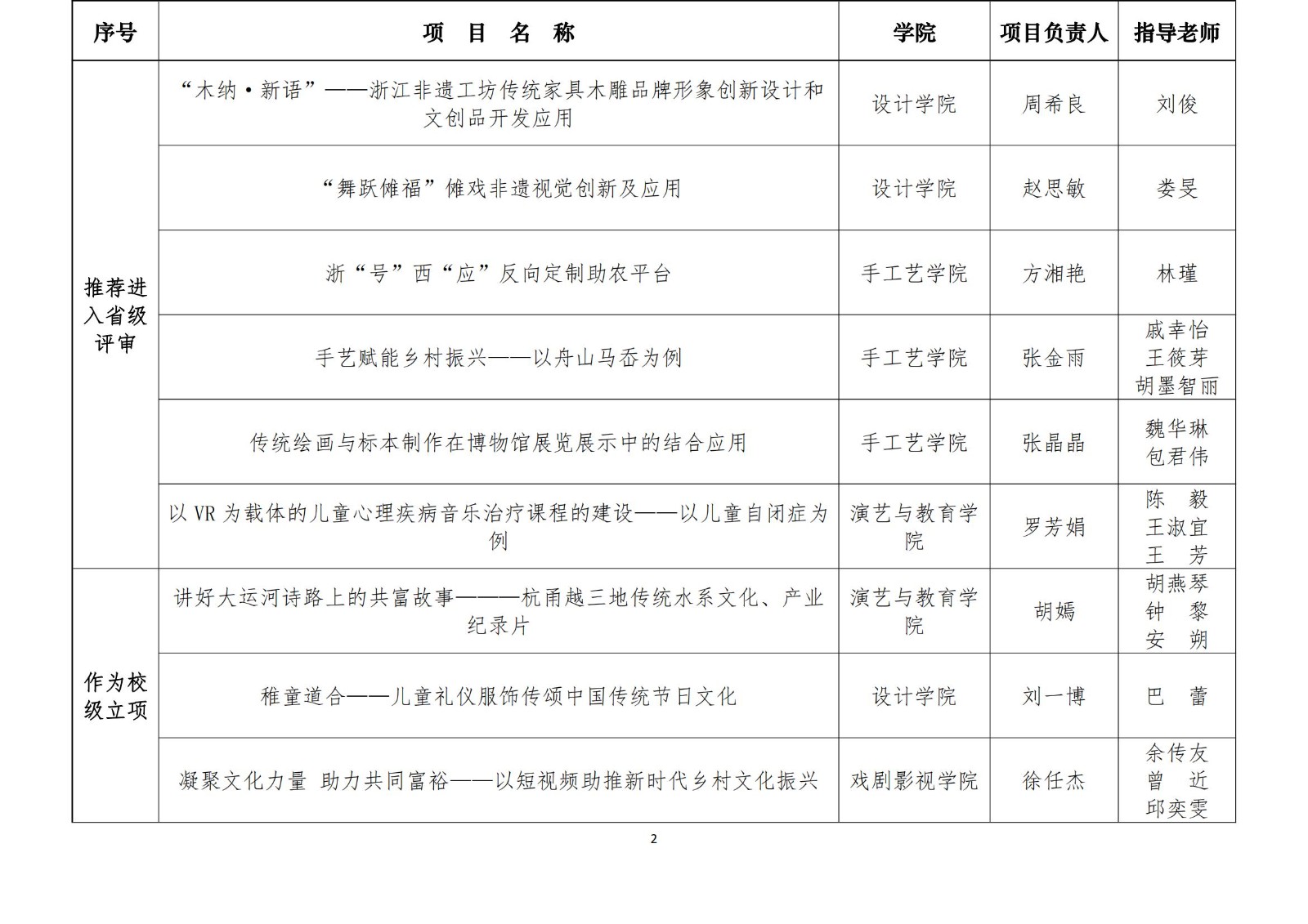 关于推荐设计学院《“木纳·新语”——浙江非遗工坊传统家具木雕品牌形象创新设计和文创品开发应用》等6个项目进入2023年度浙江省大学生科技创新活动计划(新苗人才计划)项目省级评审、确定演艺与教育学院《讲好大运河诗路上的共富故事———杭甬越三地传统水系文化、产业纪录片》等3个项目为校级立项的公示
