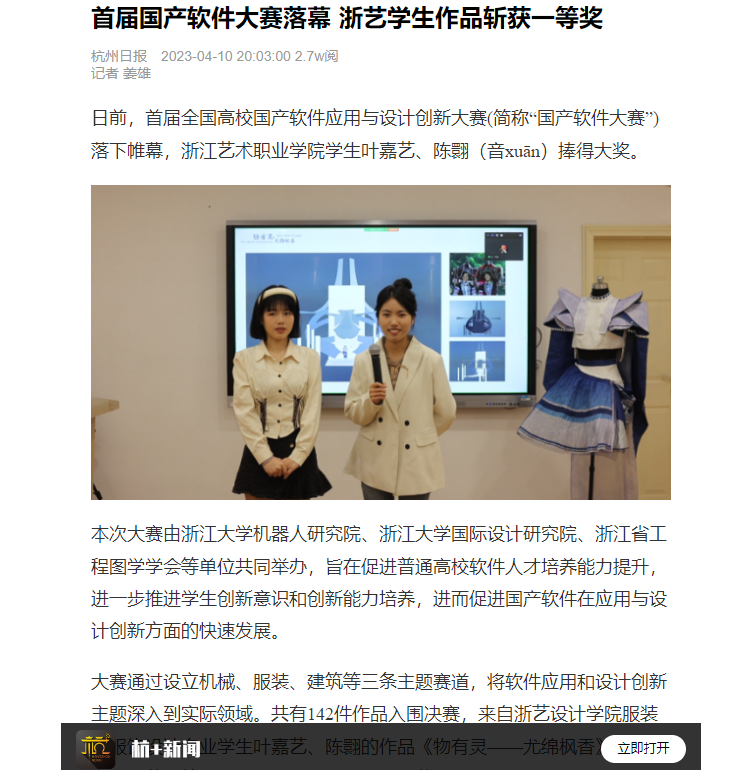 杭州日报:首届国产软件大赛落幕 浙艺学生作品斩获一等奖