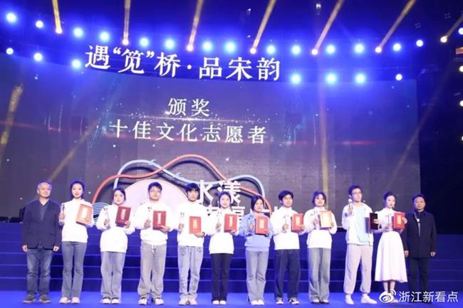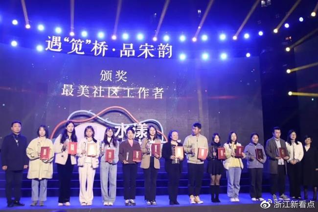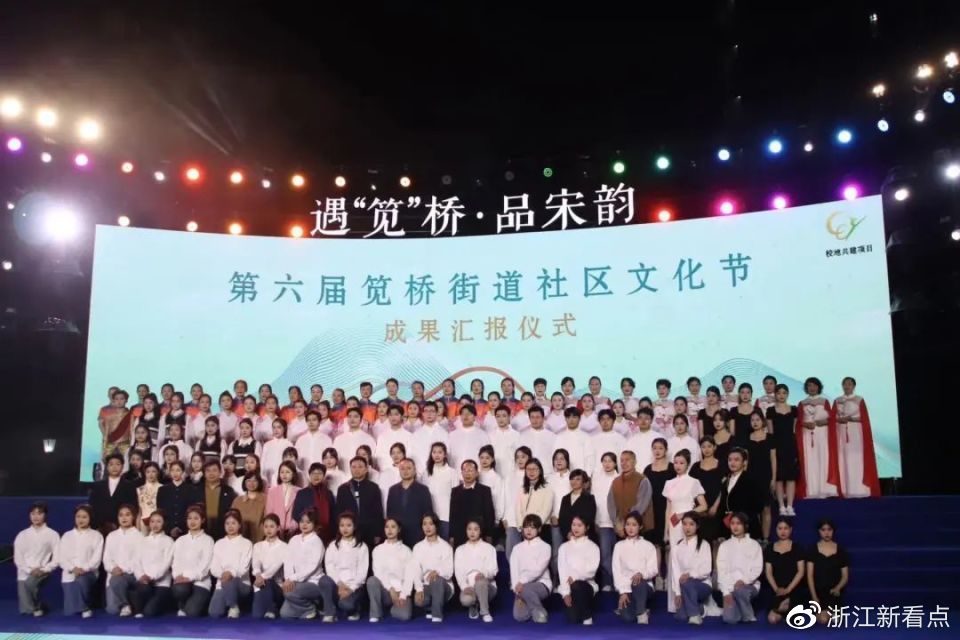 当晚,由浙艺学生与笕桥飞扬舞蹈队、东港水墨兰亭模特队倾力合作的文艺演出精彩纷呈。歌曲《我和南宋有个约会》让观众沉浸式体验宋人的风雅趣味;舞蹈《桃花晚月》与歌曲《月满西楼》串搭,让观众感受月长圆人长久的幸福美满生活;舞蹈串烧《宋引时韵》以国风音乐、服饰搭配现代舞元素,传递出宋韵文化的时尚性与多元化。原创音乐快板《放歌新笕桥》节奏轻快,情绪洋溢,引领大家领略笕桥现在、畅想笕桥未来。晚会在全场大合唱《遇“笕”》的歌声中进入尾声,预示着文化底蕴丰厚的笕桥,在时代的发展更迭中始终以昂扬奋斗之姿勇立潮头。晚会现场还表彰了本次文化节中涌现出的一批优秀代表,包括文化节宣讲比赛、摄影比赛的获奖人员、笕桥街道最美社区工作者、十佳文化志愿者等。