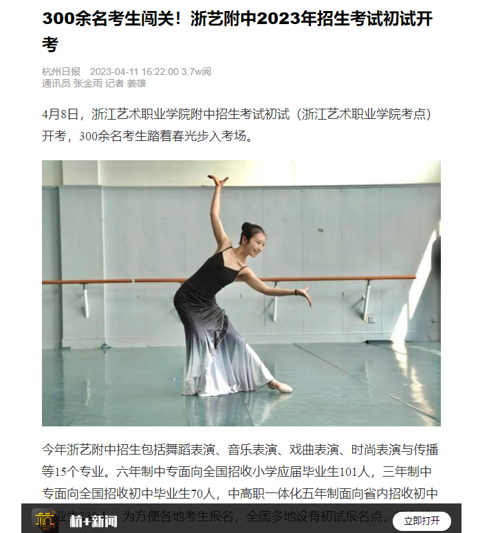 杭州日报:300余名考生闯关!浙艺附中2023年招生考试初试开考