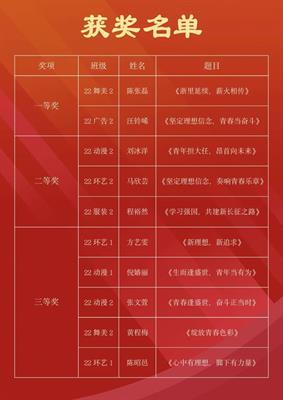 此次比赛经过初赛选拔,共有10名学生入围。选手们以信仰与坚守、青春与传承、奉献与担当等方面为切入点,结合相关故事、案例,讲述有温度、有深度、有情怀的中国故事,展现了设计学子昂扬奋进的品质精神。设计学子将继续以实际行动践行初心使命,为奋力谱写新时代新征程崭新篇章添砖加瓦。