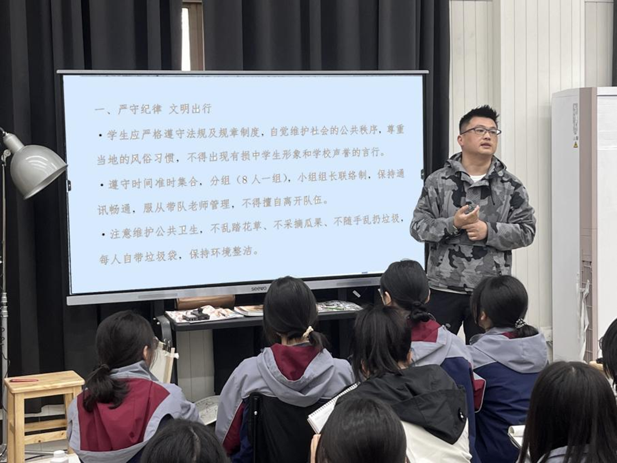 出发前,设计学院组织召开写生采风行前教育动员会,带队教师对外出写生采风的行程安排进行了说明,对外出安全纪律、管理规定等内容进行特别强调,同时也要完成好老师布置的作业要求。