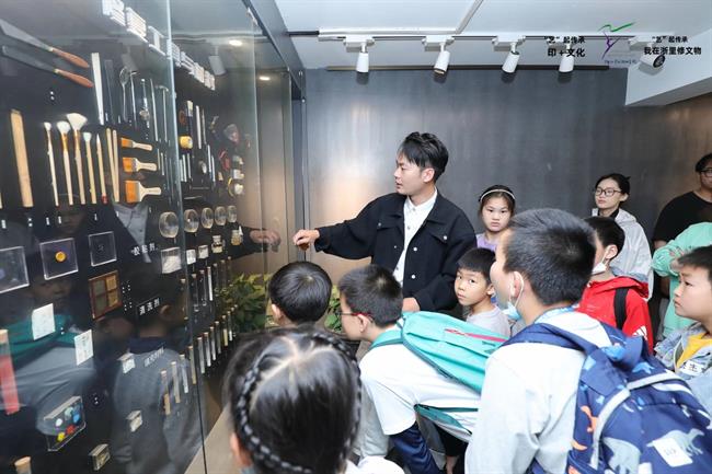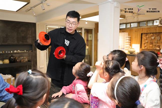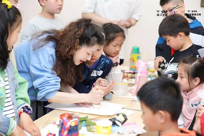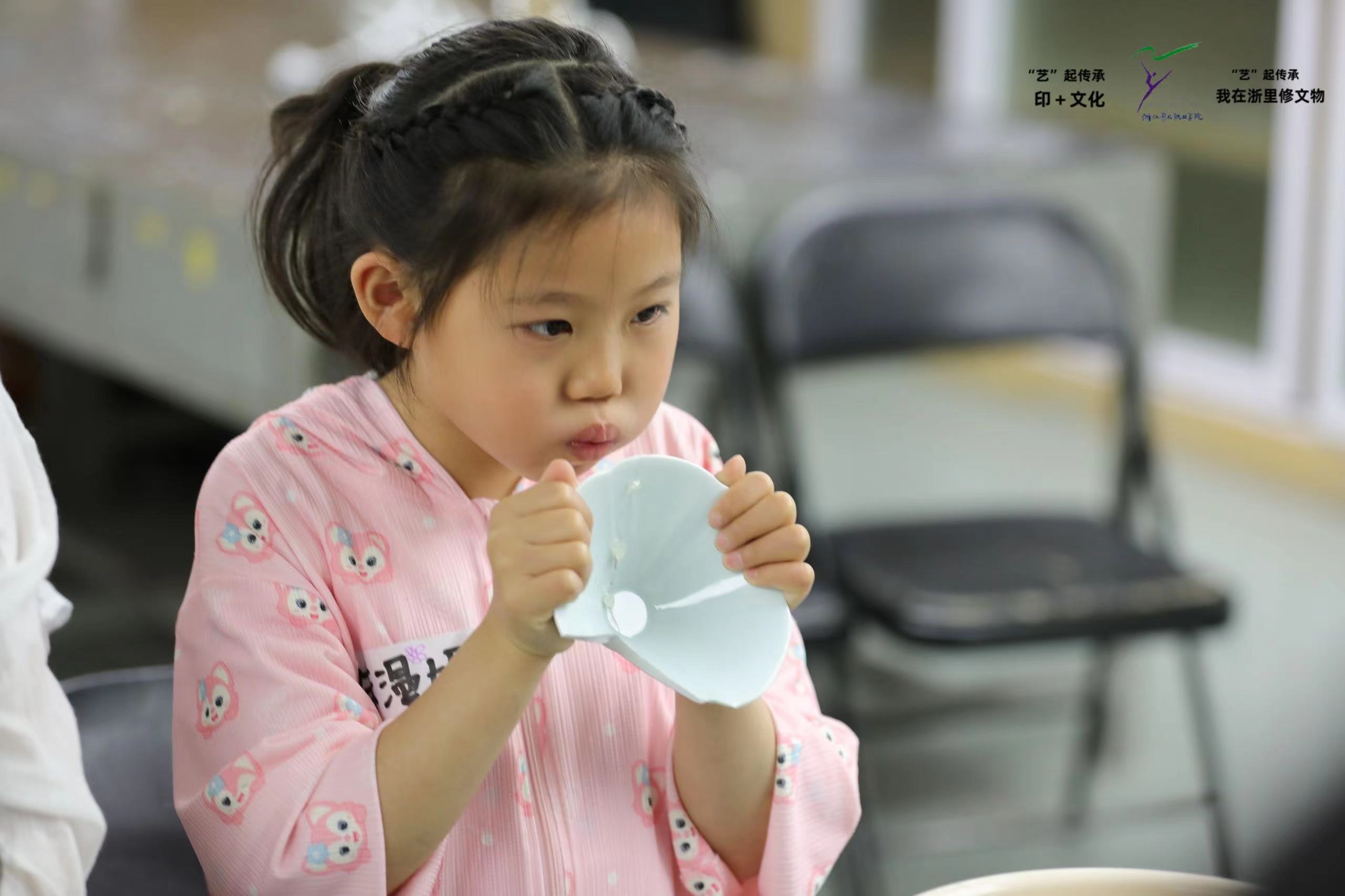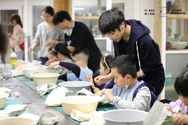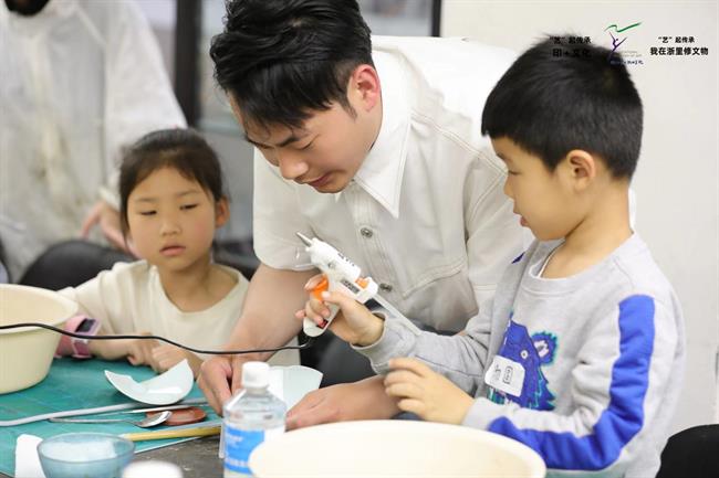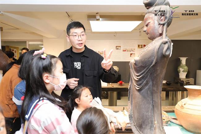 在文物修复专业教师朱伟洁、徐佳颖的带领下,孩子们来到了文物修复实训室见到了真正的文物,学习从修复到展陈的整体流程,了解展陈背后的故事。老师们生动形象,深入浅出、善于启发的教学方法深受孩子们的喜爱,也在孩子们心中种下了一颗小小的种子,把文物修复的意义传递给孩子们,让非遗文化在孩子们心底生根发芽。