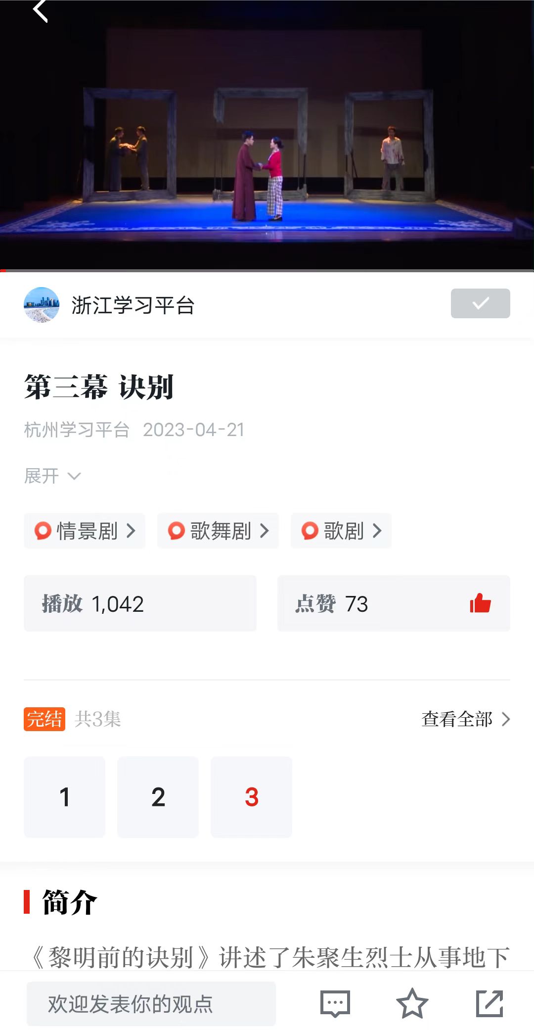 学习强国全国平台:原创情景剧《黎明前的诀别》第三幕 诀别