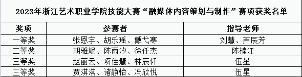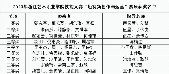 本次技能大赛,所有参赛队员沉着冷静、奋力拼搏,展现了较高的专业技能和职业素养。大赛全程组织有序、公平公正、细致严谨。赛后,专业评委对参赛作品进行点评和打分。最终,“融媒体内容策划与制作”比赛评选出1个一等奖、1个二等奖和2个三等奖,“短视频创作与运营”比赛评选出1个一等奖、2个二等奖和6个三等奖,每个赛项各角逐出两支优秀队伍代表学校参加浙江省职业院校技能大赛。