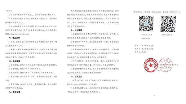1.联系人:“浙江好手艺”传统工艺作品展组委会 高老师、赵老师,0571-87150137,87150105。
