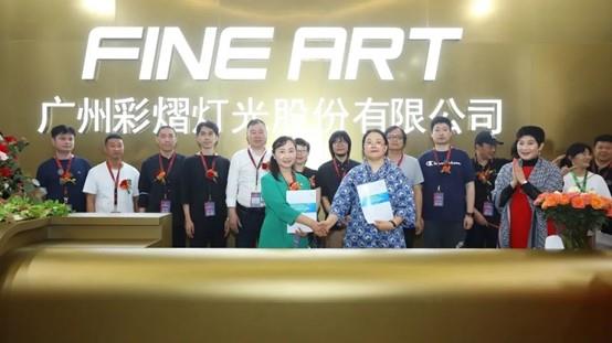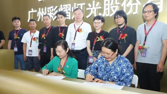 随后,黄杭娟一行参加广州市彩熠灯光股份有限公司乔迁庆典暨2023新品发布会,并签订校企合作协议。广州彩熠灯光有限公司至今已有二十一年的发展历史,是一家集舞台灯光产品研发、生产、销售和服务为一体的高新科技企业,累计获得授权知识产权近400项,高新技术产品60多项,荣获中照照明奖、中国红星设计奖、BIRTV产品奖等专业大奖,连续多年获得中国演艺行业知识产权优胜奖、产品一等奖,牵头制定国家行业标准,创新与科技实力行业领先。