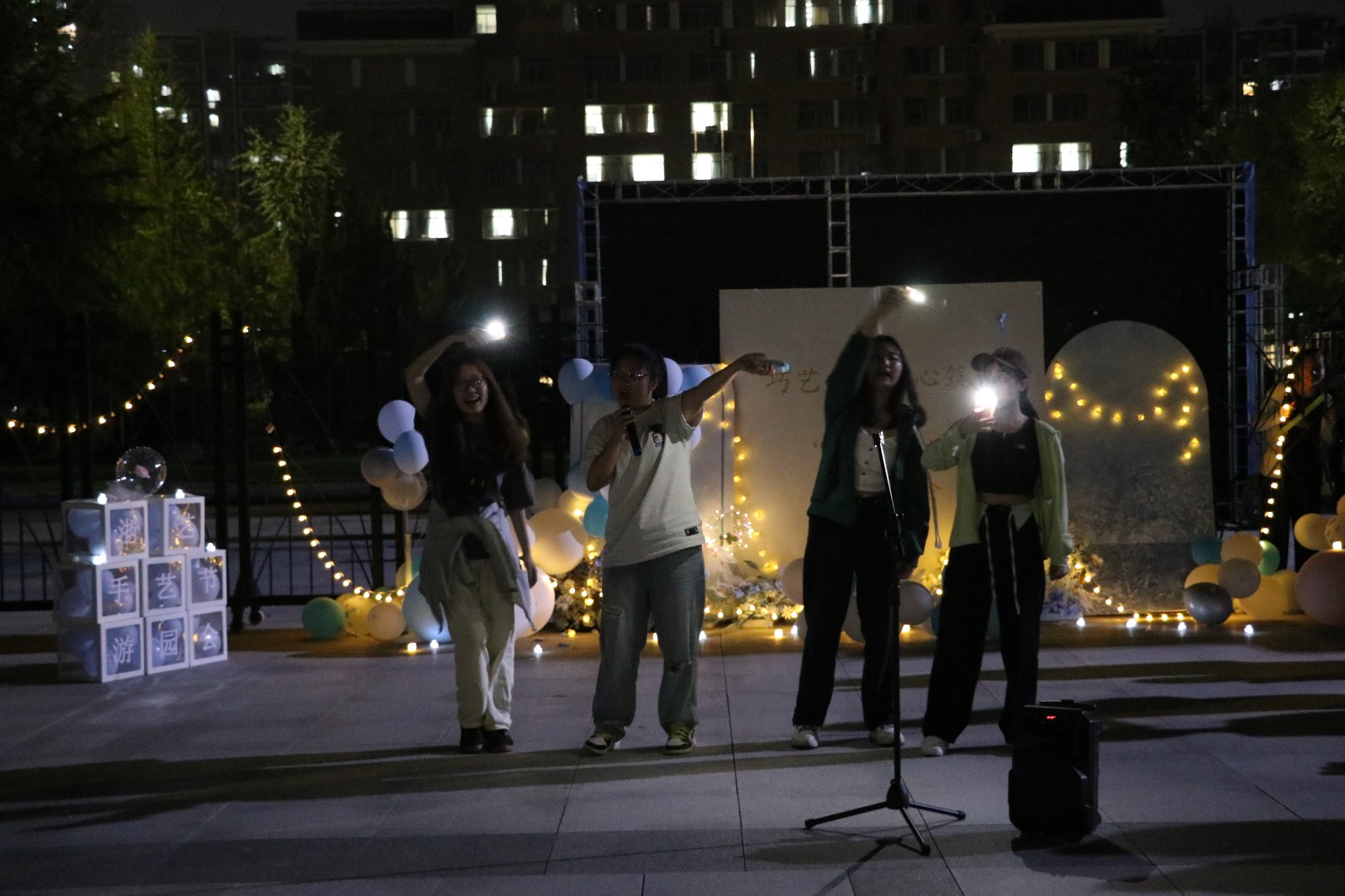 此外,本次游园不仅有妙趣横生的游戏,还邀请了现场的20级毕业生和游园者表演节目,现场观众将手举过头顶,挥舞着闪光灯,伴着微风轻拂,欢呼呐喊着,为即将启程的同学们带去祝福。