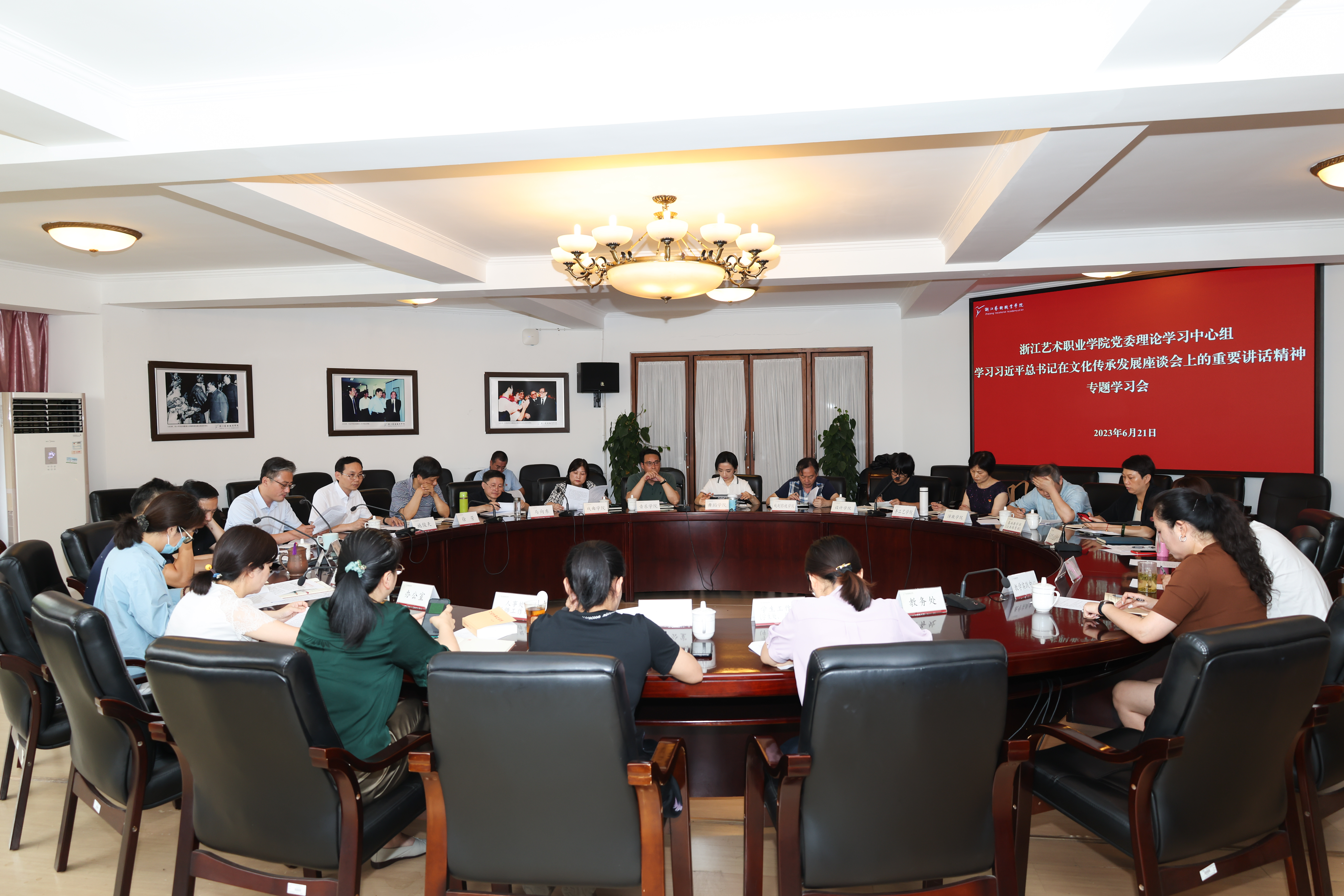 党委班子成员、有关职能部门和二级学院负责人围绕学习主题,从新征程新使命和戏曲传承、民族音乐传承、传统手工艺传承等方面交流了学习体会。