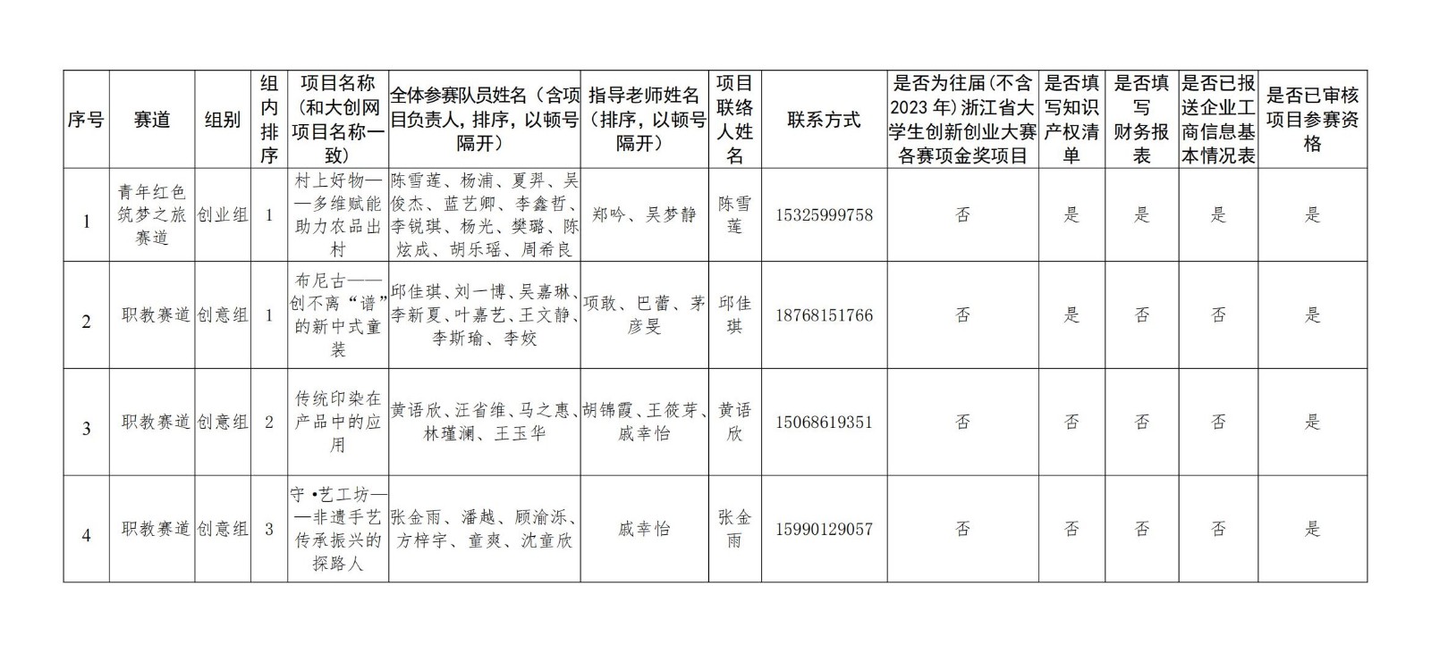 根据《浙江省大学生创新创业大赛组委会关于举办“建行杯”第九届浙江省国际“互联网+”大学生创新创业大赛的通知》,校团委于2022年12月到2023年5月开展了参赛作品的校内选拔。经校内外专家组评审及作品打磨,现拟推荐《村上好物——多维赋能助力农品出村》等4个作品代表我校参加第九届浙江省国际“互联网+”大学生创新创业大赛并予公示。具体项目情况如下: