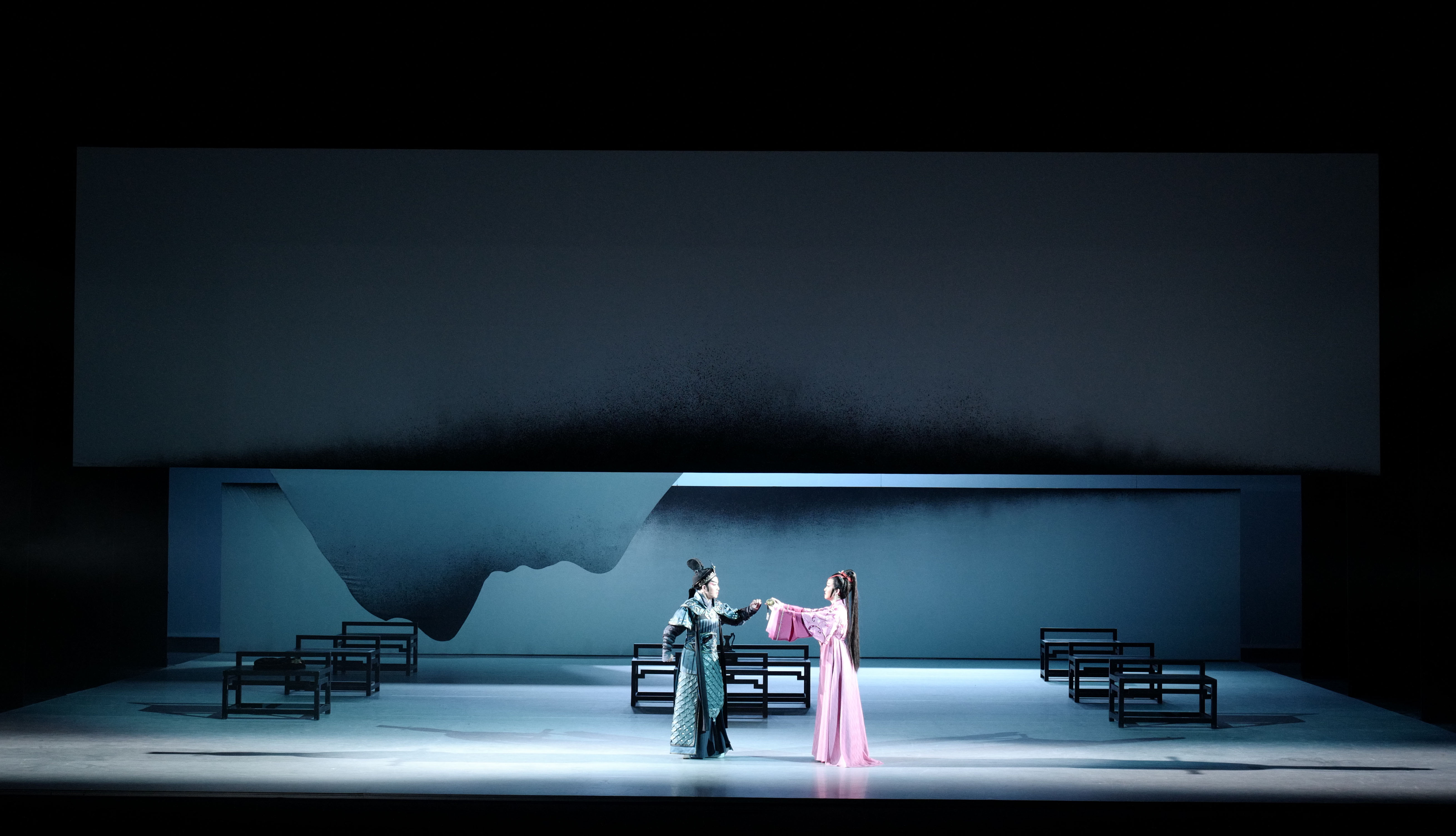 周正平一直对于艺术创作有独特的见解,被中国艺术界誉为“灯光诗人”。本次展览中,周正平的作品有越剧《红玉》和山水剧场《清溪江湖》。《红玉》的灯光设计融入舞美整体空间的韵律,又作为流动的画笔自成体系。在白色调的空灵布景中,使用和谐的色彩和精致的笔触,描绘出简约诗化的情境。在创造意象空间的表现手法上,运用富有张力和节奏感的光影,既刻画了表演动作,又强化了全女班演员在武戏上的阳刚气质。将繁复的技术手段和凝练的艺术构思隐藏在诗意画面背后,通过光形成视觉语汇,与观众进行情绪对话。在《清溪江湖》中,周正平让视觉艺术进入清湖古镇的整体公共空间,既是对沉睡着的江山文化的唤醒,也是他游走半生对故乡的献礼。