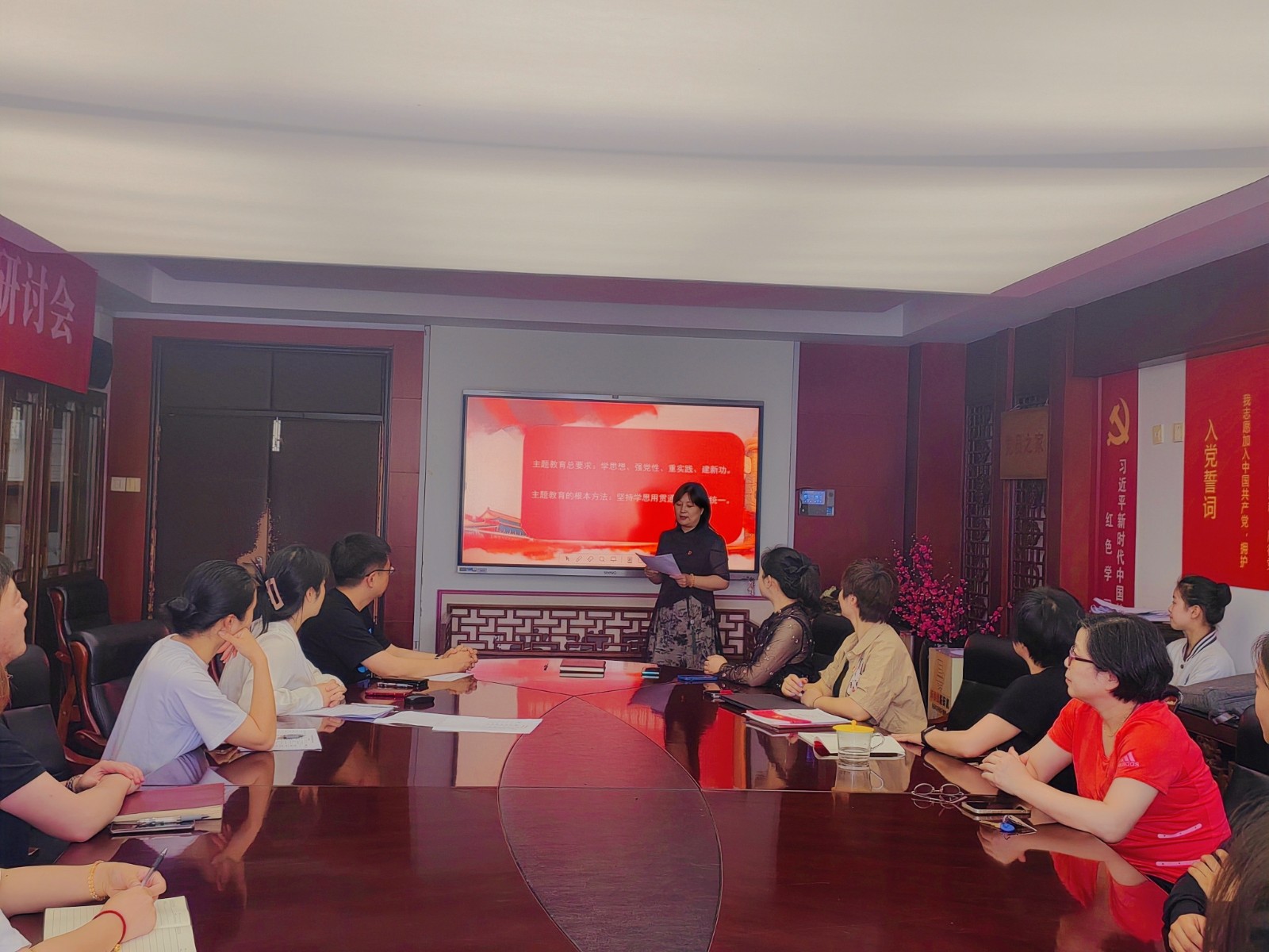 党总支专职副书记谢志勇以《在主题教育中锤炼党性修养提升工作本领》为题上专题党课。他从以学铸魂、坚定理想信念,以学增效、弘扬新风正气,以学促功、更好履职尽责等三个方面进行讲述。他谈到,党性修养不是一阵子的事,而是一辈子的事。扎实开展主题教育,就要自觉用习近平新时代中国特色社会主义思想改造主观世界,进一步加深对党的作风建设重要性的认识,加深对遵规守纪自觉性的认识,增强对发挥表率作用的认识,更加自觉坚定地在思想上政治上行动上同以习近平同志为核心的党中央保持高度一致,把作风建设摆在突出位置,以好的作风振奋精神、激发斗志、凝聚力量、攻坚克难。全体党员要坚持用理论武装“润心铸魂”,坚决做到依法履职、依规从业、勤廉工作。