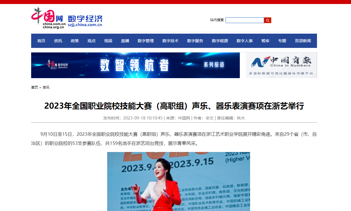 中国网:2023年全国职业院校技能大赛(高职组)声乐、器乐表演赛项在浙艺举行