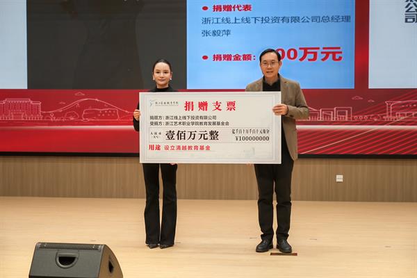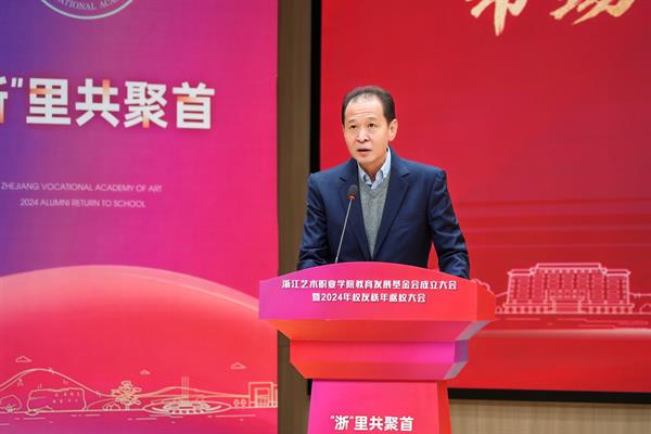 薛亮在致辞中表示,学校今时之风貌离不开一代代浙艺人的接续奋进,浙艺教育发展基金会的成立获得各方大力支持,让我们深切感受到企业对于学校艺术教育事业发展的关心以及各位校友对母校的拳拳赤子心。学校定会不负所望,集各界力量,在高质量发展的征程中打响文化艺术职业教育的“浙艺品牌”。