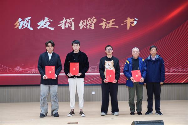 徐天赐、侯淇玮、吴祖康、李昊四位校友代表上台捐赠了珍贵校史史料及文物,并分享了这些物品背后的故事,展现了浙艺深厚文化底蕴和校友们对母校真切的情谊。