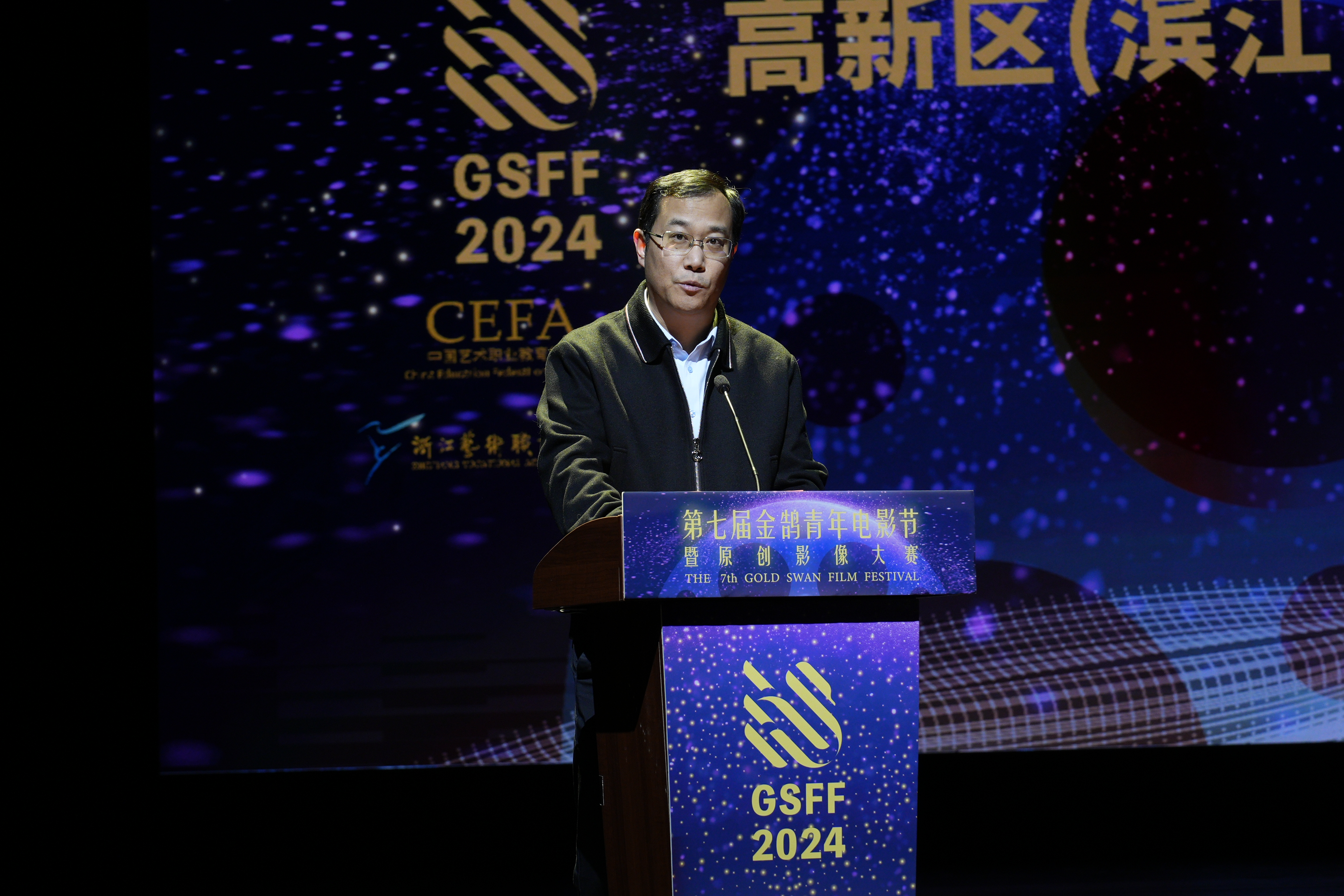 翟慧清在致辞中表示,金鹄青年电影节作为青年电影人展示才华的舞台,见证了一批又一批青年电影人的成长。近年来,滨江区政府持续关注和支持青年电影人的成长与发展,通过活动平台的搭建、实践资源的对接以及创意支持的加持,致力为青年创作者提供一个能够承载梦想的广阔舞台。