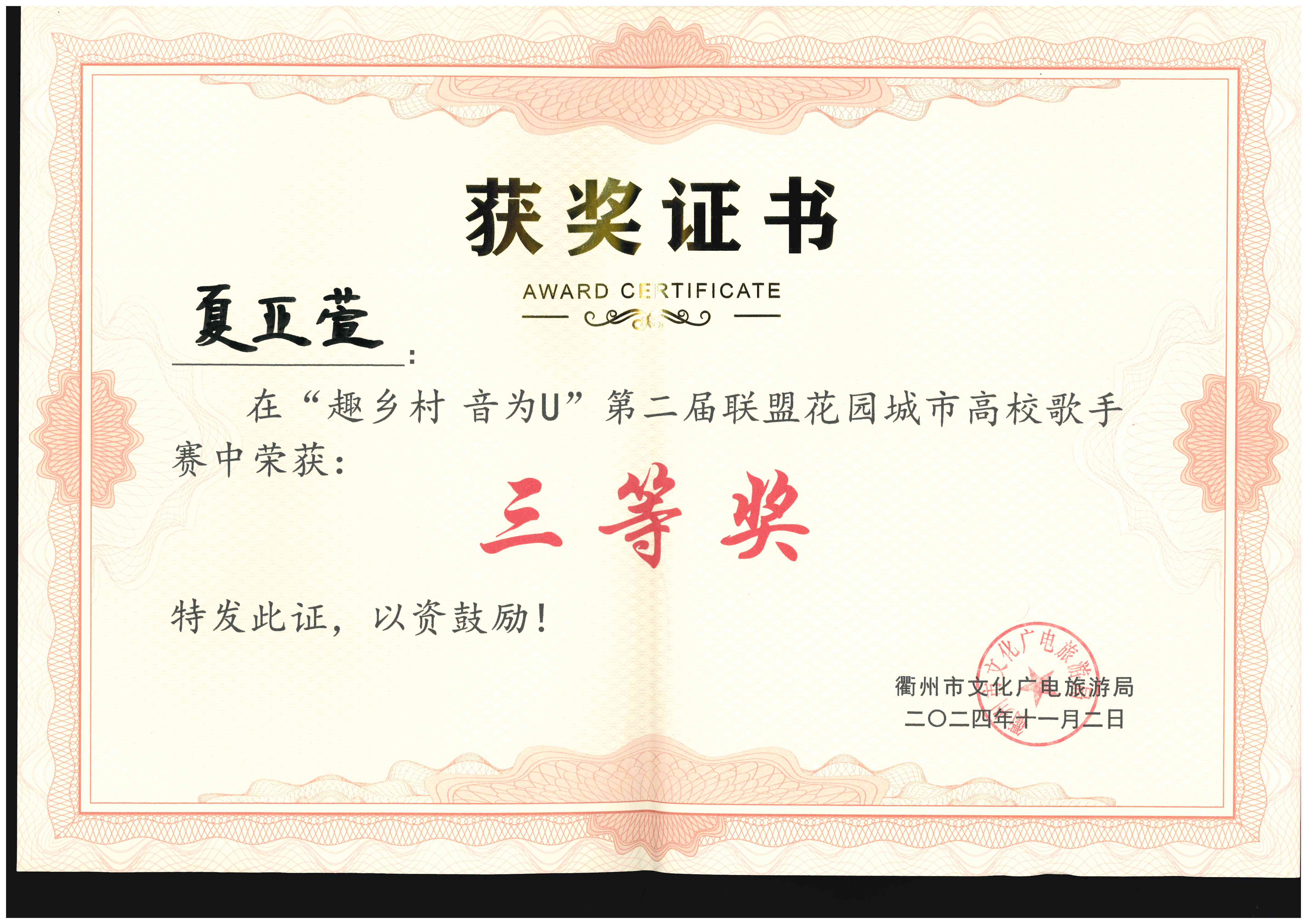 出处:学生工作部(学生处)  文字:郭婉婷 章伊宁  图片:常山县文化和广电旅游体育局  编辑:江勇  时间:2024-11-08
