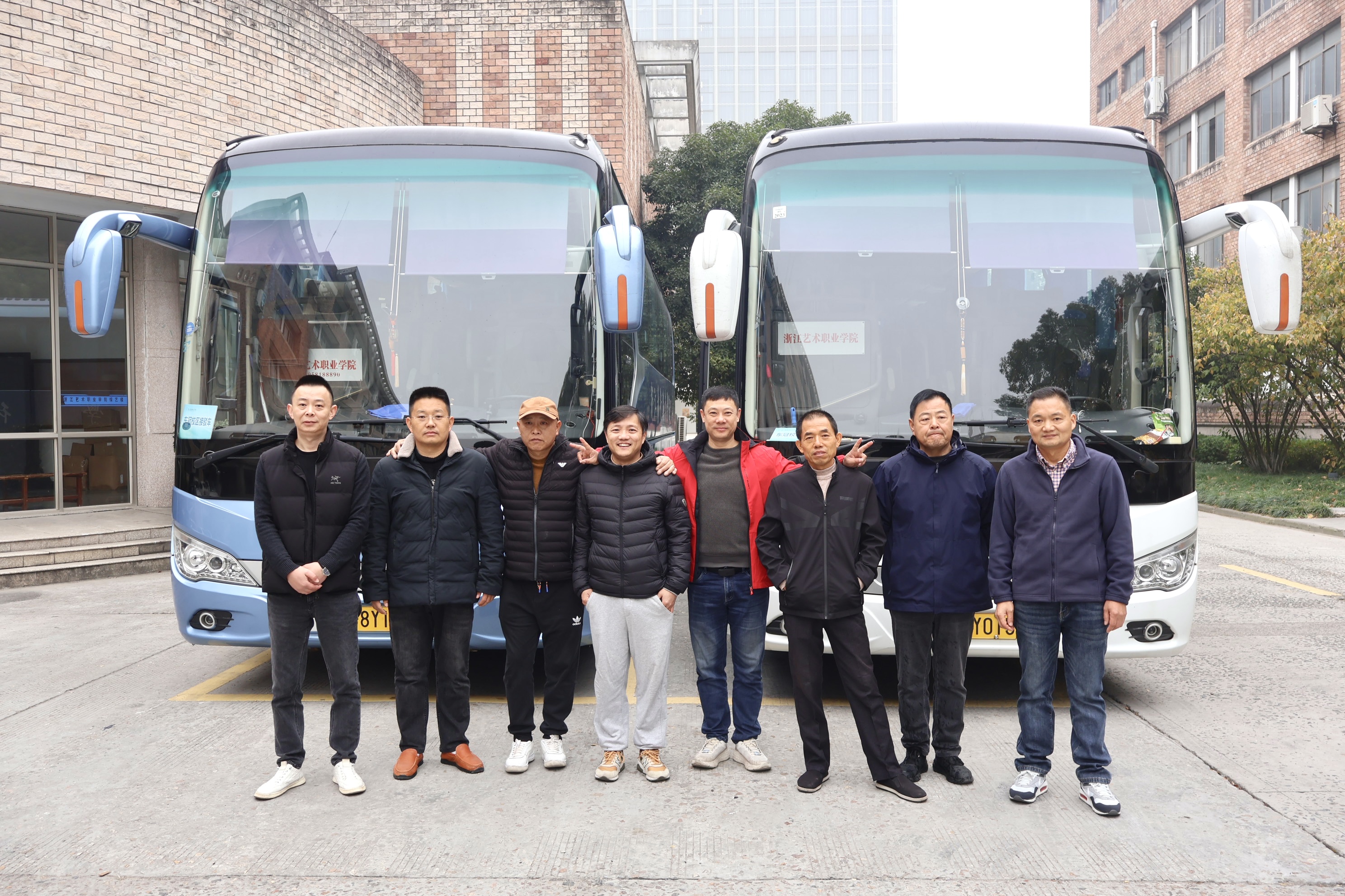 浙艺车队由9名优秀的司机组成,他们分别是李立华、谢一力、孟长荣、马后松、余全顺、王文松、郑建德、经千驹和王磊。他们不仅是教职工出差的得力助手,更是两校区师生日常通勤与演出活动的坚实后盾。从晨曦初露到夜幕低垂,他们的身影总是穿梭在校园的每一个角落,确保每一次出行的准时与安全。