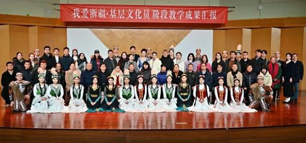 在“我爱浙疆・基层文化员”阶段教学成果汇报演出中,新疆班的同学们展示了音乐与舞蹈模块的学习成果。他们的表演充满了青春活力和艺术感染力,赢得了在场观众的阵阵掌声。这一汇报演出不仅展示了同学们的专业素养和艺术才华,更展现了浙阿两地文化交流合作的丰硕成果。