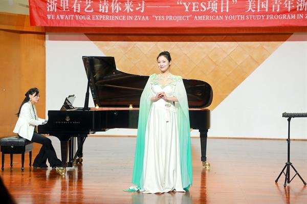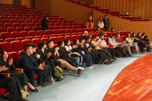 在浙艺教师的带领下,美国学生们观摩了我校戏曲学院昆曲表演课堂,并在专业教师和同学的指导下,尝试使用“马鞭”“把子”等戏曲道具进行表演,开展体验互动。在音乐学院音乐厅,他们聆听了美妙悦耳的民歌演唱和民乐演奏;在舞蹈学院,他们欣赏了舞姿婀娜的中国传统舞蹈表演。这些丰富多彩的校园活动,使美国学生们对中国传统文化有了更为深入、直观的了解与认识。