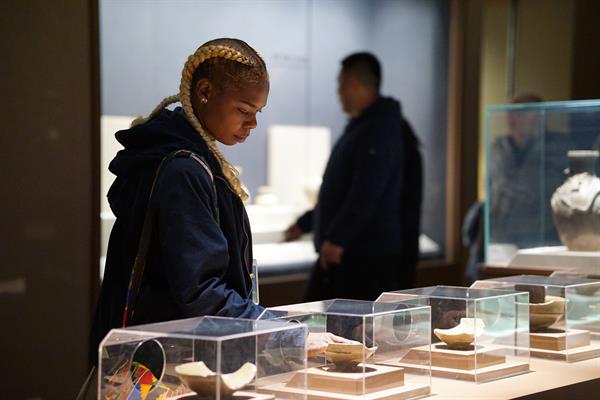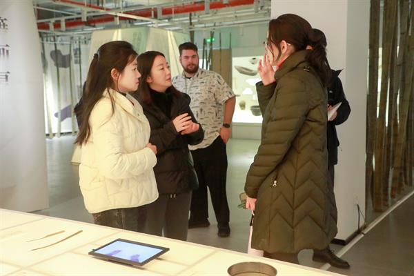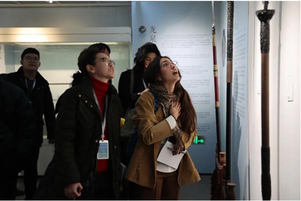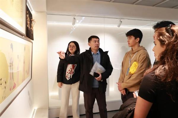 主题课程之余,美国学生踏入了跨越时空的文化艺术殿堂,参观了手工艺学院立业园三楼展厅“时光造物”非遗创意成果展、“古意新续”手工艺作品展和龙泉剑刀剑研究院邀请展,以及新大楼传统工艺技艺展。展厅内,各类手工艺品琳琅满目,从传统刺绣到现代陶艺,从龙泉宝剑到剪纸作品,每一件作品都凝聚着手艺人的心血与智慧。美国学生们在讲解员的带领下,了解了每件作品背后的故事和制作工艺,深刻感受到中国传统手工艺的独特魅力。