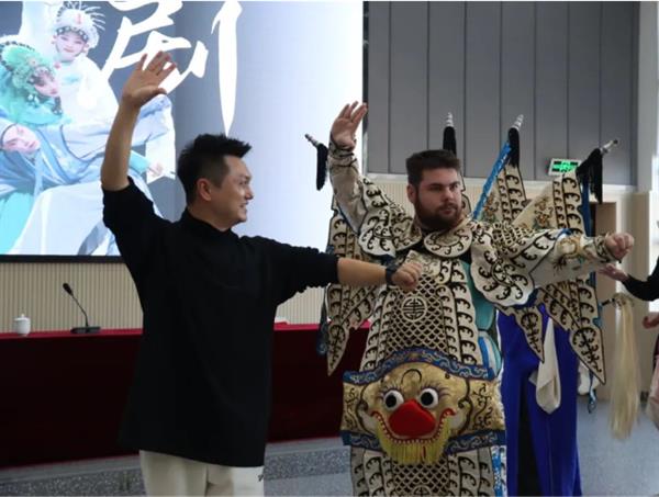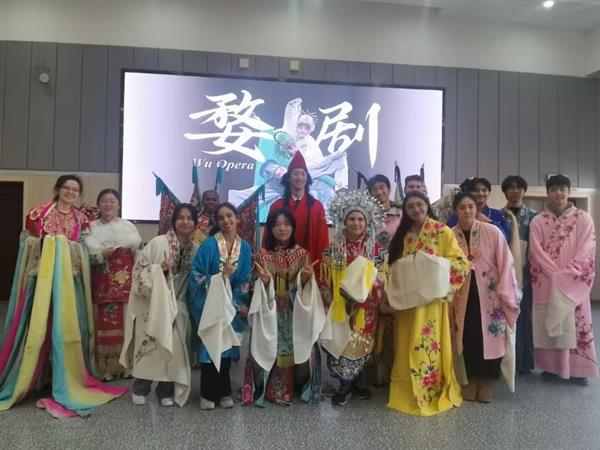 期间,美国学生们前往浙江金华,体验了传统戏曲——婺剧。在专业讲解下,他们深入了解了婺剧的历史文化后,踊跃试穿戏服进行模仿,虽动作略显生涩,却热情满满,这次体验无疑加深了他们对中国传统戏曲多元丰富性的认知与热爱。