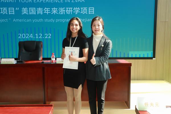 在结业仪式上,副校长刘秀峰回顾了此次访学活动的精彩瞬间和丰硕成果,并提到此次访学活动不仅是一次文化的交流与碰撞,更是在青少年们心中种下了友谊与合作的种子。浙艺将继续发挥自身专业优势,大力推进中美教育交流,共同搭建中美两国青年相知相亲的平台,打开感知了解中国的重要窗口,谱写中美两国人民友谊的崭新篇章。