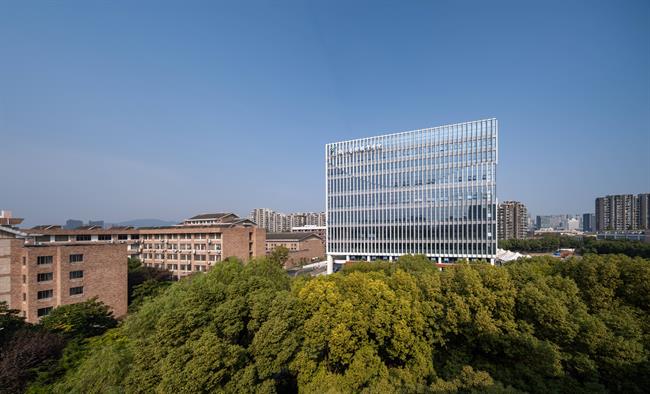 随后,在校领导的陪同下,嘉宾和师生们一同参观了教学综合楼。