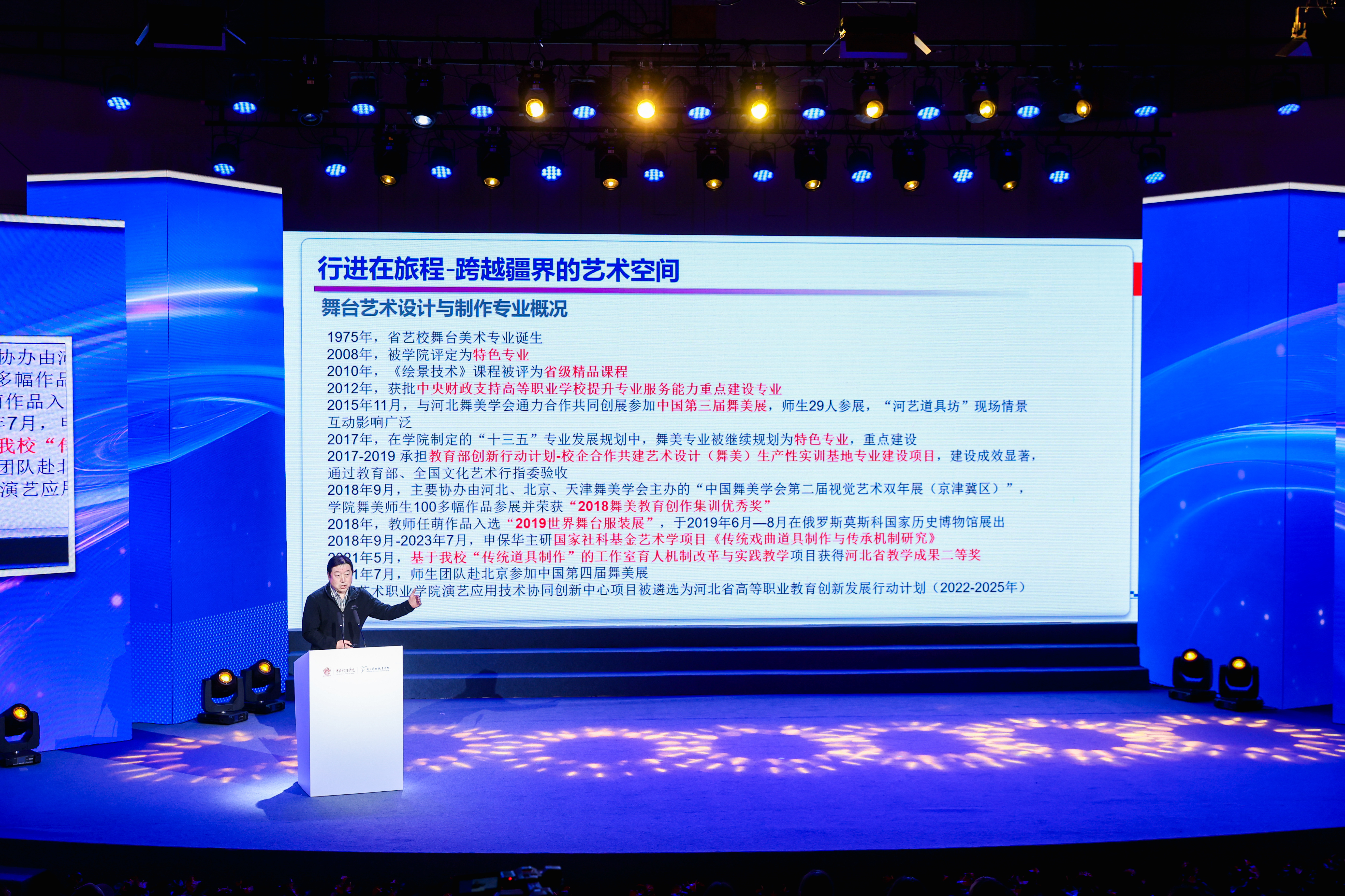 河北艺术职业学院舞美专业带头人申保华,浙江大丰实业股份有限公司剧场工艺设计总监郑劲松作建设案例分享。